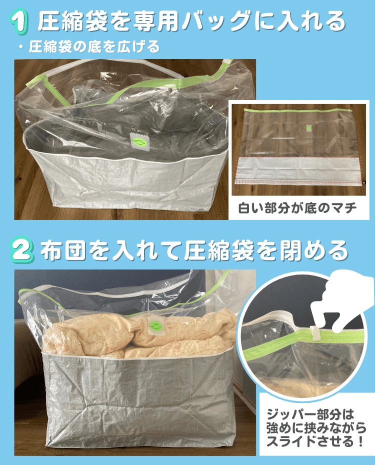圧縮袋で届くため、布団のオフシーズンに出すのもアリだなと思いました。