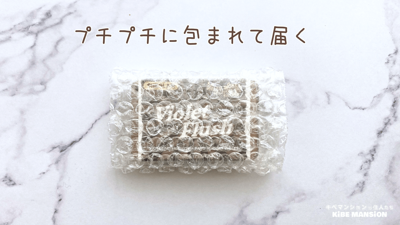 ウォンカ菫色チークは、プチプチに包まれていてケースは割れずに無事届いた。